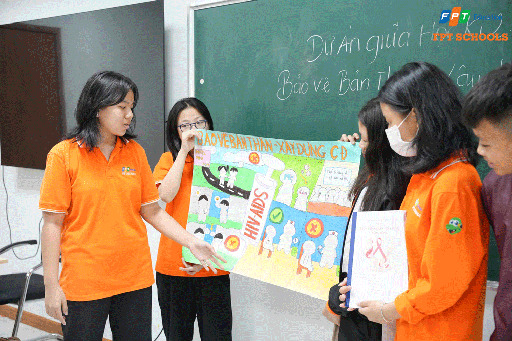 Theo đó, các Fschoolers sẽ được phân nhóm và làm việc để tạo ra các sản phẩm kết thúc dự án theo yêu cầu của giáo viên bộ môn. Sau khi cùng nhau nghiên cứu, mỗi nhóm sẽ phải hoàn thành tối thiểu 01 bài luận và 01 tranh cổ động.