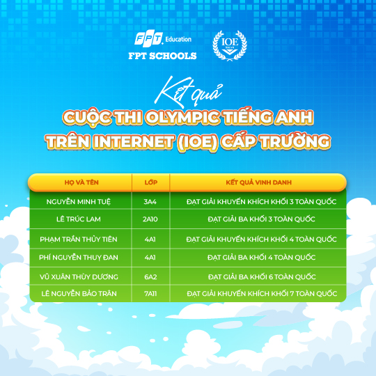 Hơn 170 Fschoolers đạt thành tích tại Cuộc thi Olympic Tiếng Anh trên Internet (IOE) cấp Trường năm học 2023-2024