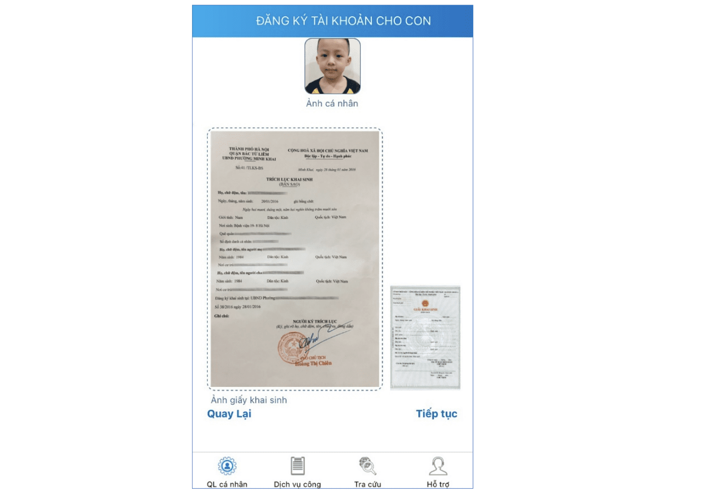 Bước 4: Cập nhật ảnh cá nhân và ảnh giấy khai sinh của con3