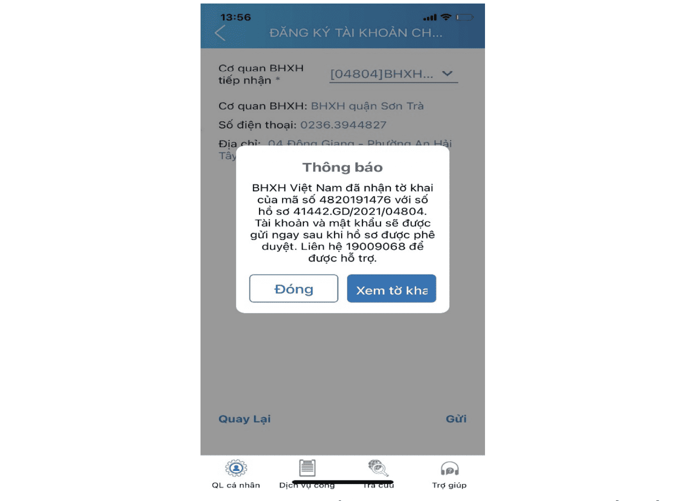 Nhấn “Đồng ý” để gửi tờ khai đến cơ quan BHXH.