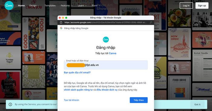 B4: Sau khi nhập xong tài khoản, chúng mình bấm chọn “Đăng nhập” để hoàn tất quá trình đăng ký tài khoản Canva dành cho Giáo dục.