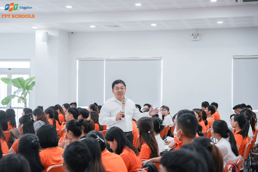 FPT Schools Miền Trung xin gửi lời cảm ơn chân thành đến thầy Hoàng Nam Tiến về những bài học vô cùng giá trị trong khóa học vừa qua. Tin rằng, khoá học đã giúp các thầy cô có cái nhìn rõ nét hơn về năng lực quản trị sự thay đổi, từ đó “nghĩ không cũ về những điều không mới”, để mỗi ngày đến trường đều là ngày vui của học sinh và niềm hạnh phúc của thầy cô.