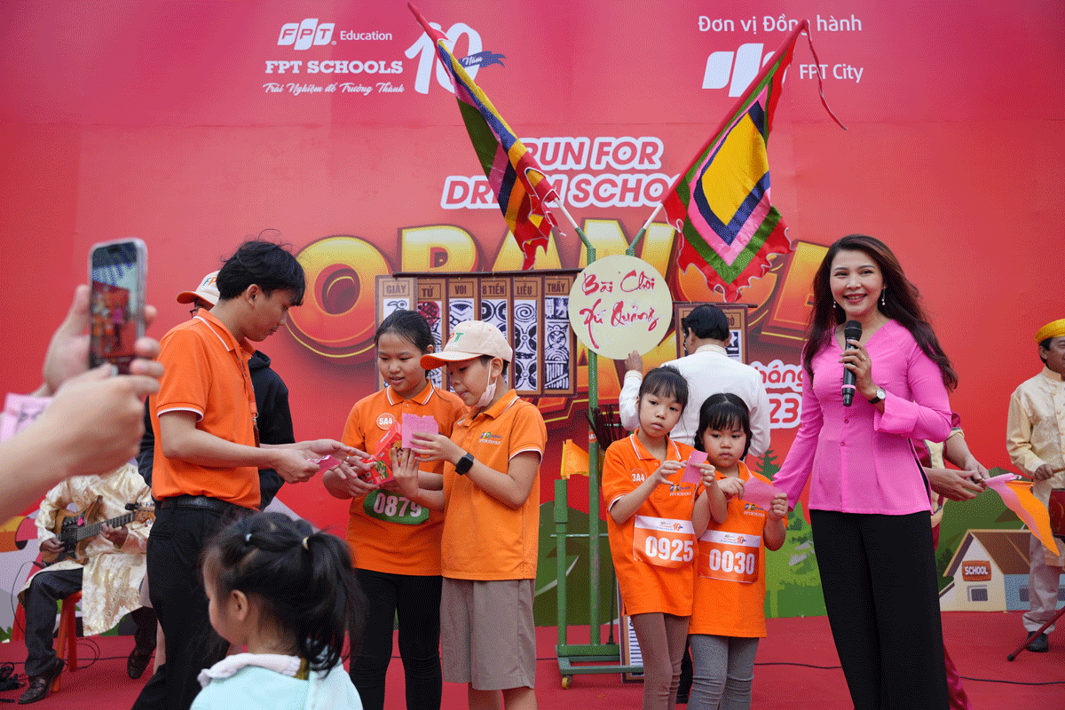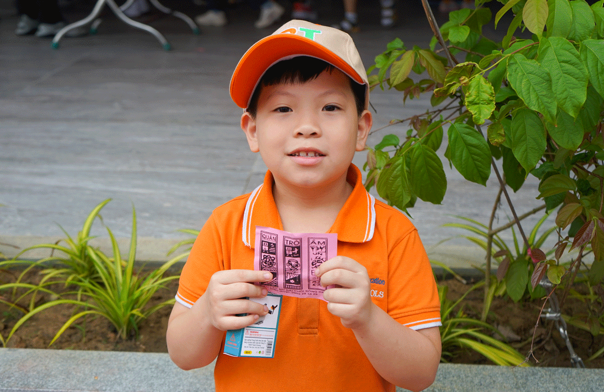 Bên cạnh bài chòi, các em học sinh TH&THCS FPT Đà Nẵng còn được trải nghiệm nhiều gian hàng dân gian như ô ăn quan, nhảy lò cò, viết thư pháp, bịt mắt đập trống,…