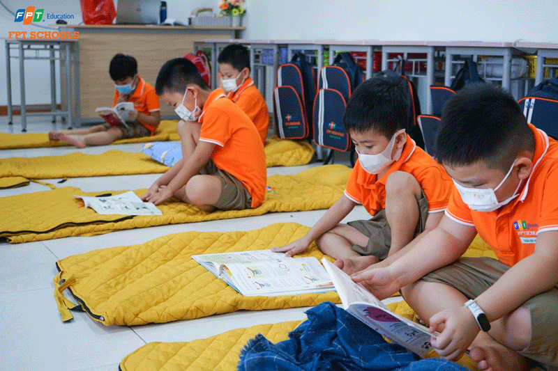 Mô hình bán trú được áp dụng tại FPT Schools Đà Nẵng từ những ngày đầu thành lập trường, đây là mô hình trường học đang được rất nhiều Quý Phụ huynh và các bạn học sinh quan tâm và tin tưởng. Mô hình học tập bán trú là hình thức tổ chức trường học nơi học sinh có thể ở lại trường vào buổi trưa để ăn uống, nghỉ ngơi, sinh hoạt và chuẩn bị cho những hoạt động học tập tiếp theo vào buổi chiều. Chúng ta hãy cùng nhau khám phá một ngày học bán trú của Ếch Cốm Tiểu học tại nhà F có gì đặc biệt nhé!