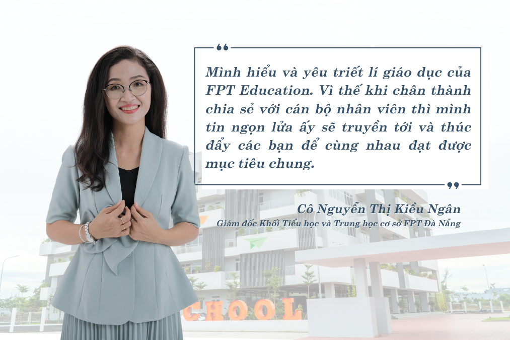 Kể từ ngày đảm nhiệm vị trí chèo lái con thuyền Tiểu học và Trung học cơ sở FPT Đà Nẵng đến nay, cô Ngân luôn đau đáu một nỗi niềm làm thế nào để quyết tâm đưa trường Tiểu học và Trung học cơ sở FPT trở thành điểm sáng của ngành giáo dục TP. Đà Nẵng.