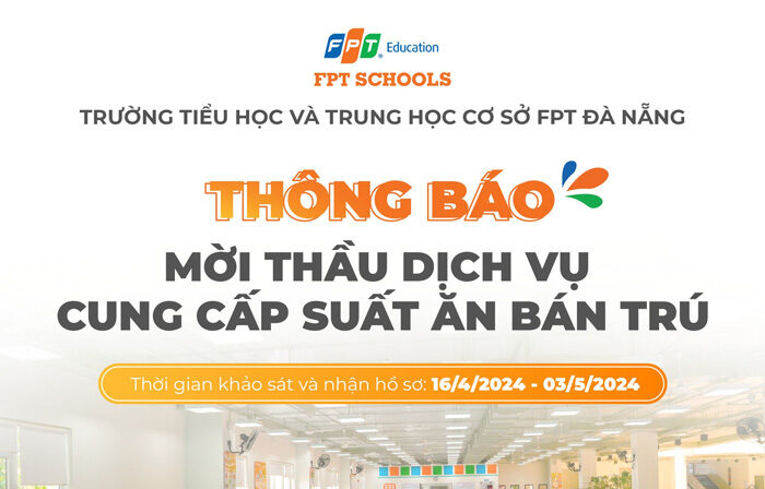 Trường Tiểu học, Trung học cơ sở và Trung học phổ thông FPT có nhu cầu cung cấp dịch vụ suất ăn bán trú tại Tòa nhà Epsilon Trường Tiểu học, Trung học cơ sở và Trung học phổ thông FPT.